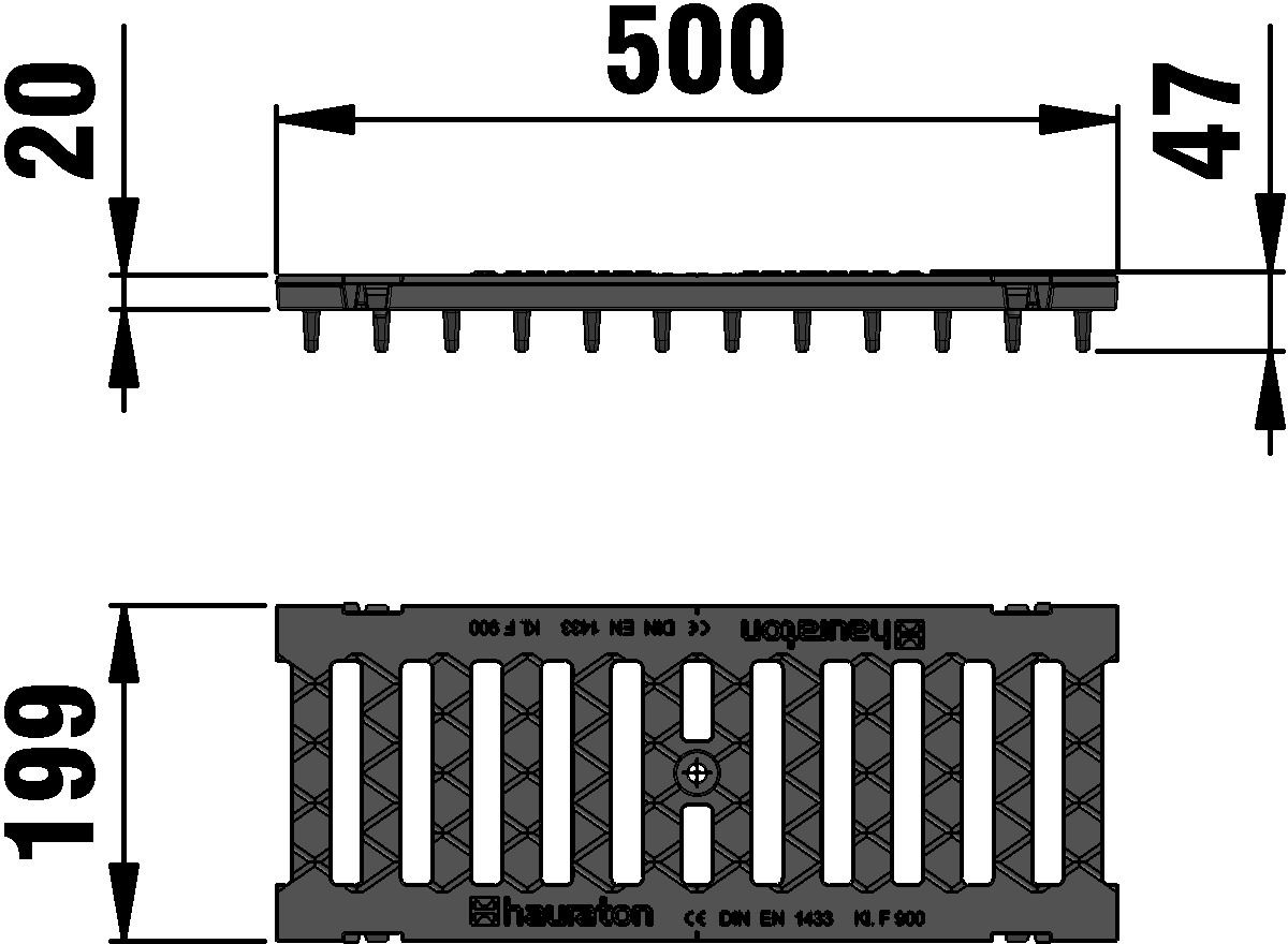 FASERFIX KS 150 - Rešetka od nodularnog liva širine proreza 132/18 mm, napravljena od nodularnog liva EN-GJS, crna, sa uzdužnom zaštitom od klizanja, klasa opterećenja A 15 - F 900 prema EN 1433, CE usaglašeno, 4-struko zaključavanje, dužina 500 mm, broj artikla 10735