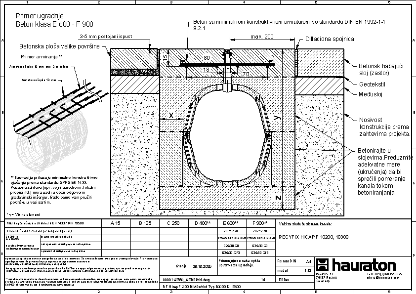 RECYFIX HICAP F 10300 sastoji se od zatvorenog tela kanala napravljenog od recikliranog polipropilena, sa ulaznim levkom, sa integrisanom rešetkom od nodularnog liva SW 6 mm, KTL-zaštićenom, klasa opterećenja A 15 - D 400 prema EN 1433, dužina 1140 mm, broj artikla 13860