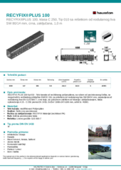RECYFIX PLUS 100 tip 010 - Telo kanala od recikliranog polipropilena, sa rubom od pocinkovanog čelika, sa mogućnošću vertikalnog priključka DN/OD 110, sa rešetkom od nodularnog liva SW 80/14 mm, napravljena od nodularnog liva EN-GJS-500-7, crne boje, sa uzdužnom zaštitom od klizanja i zaključavanjem, klasa opterećenja A 15 - C 250 prema EN 1433, DxŠxV 1000x147x186 mm, artikl br. 40381