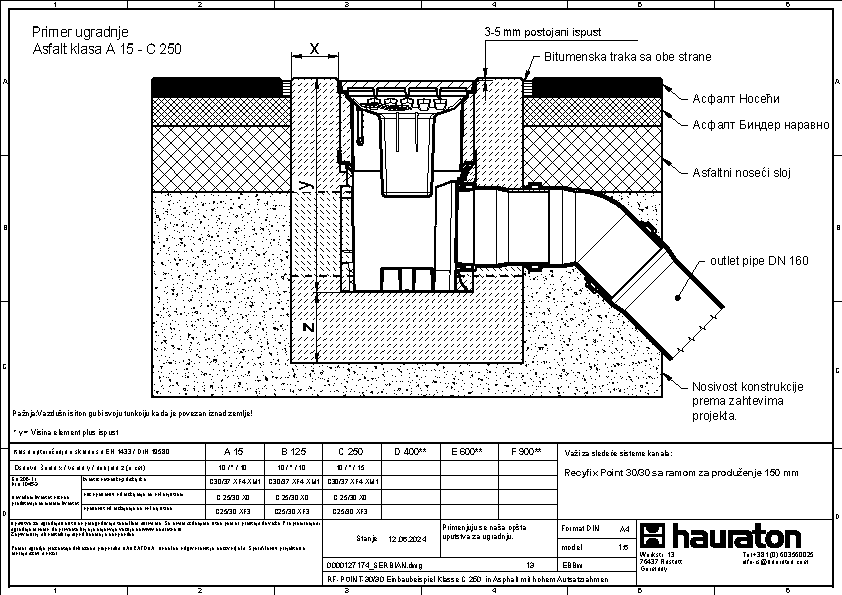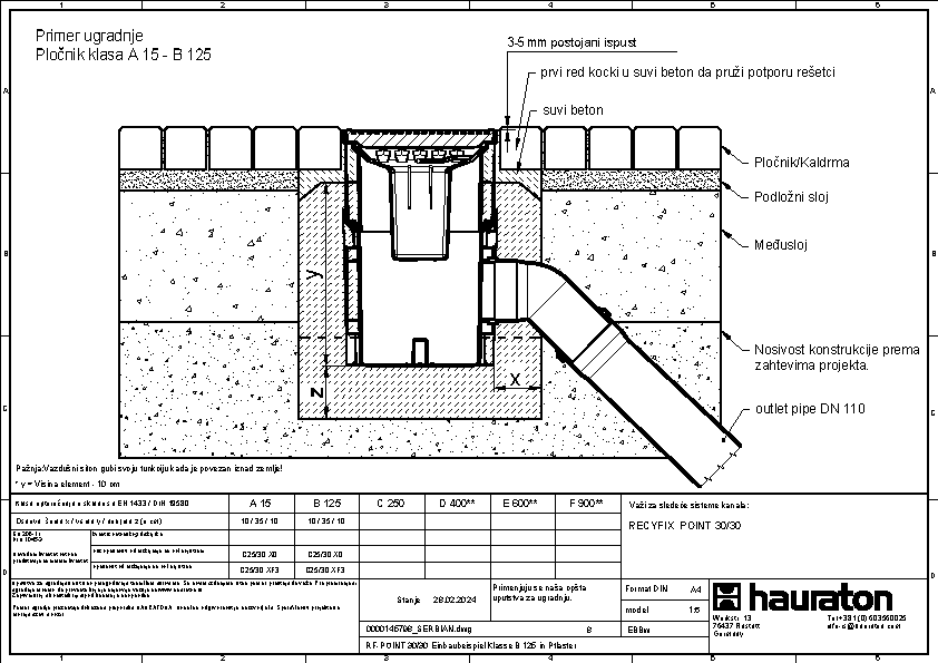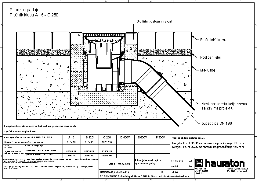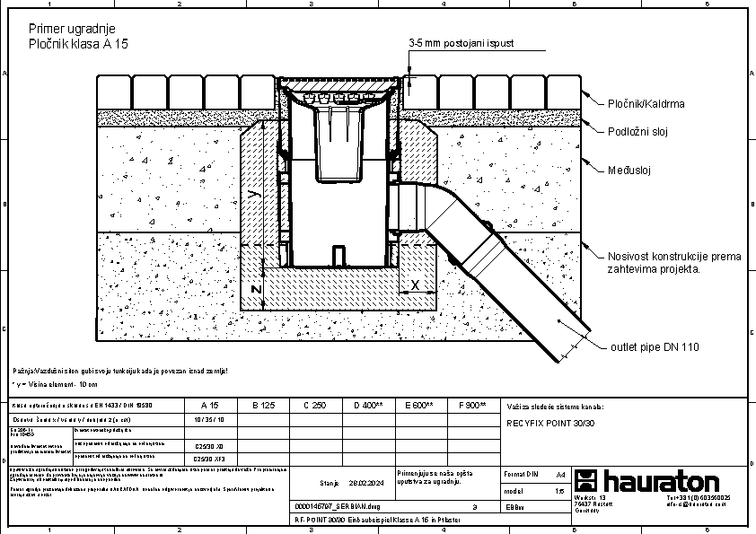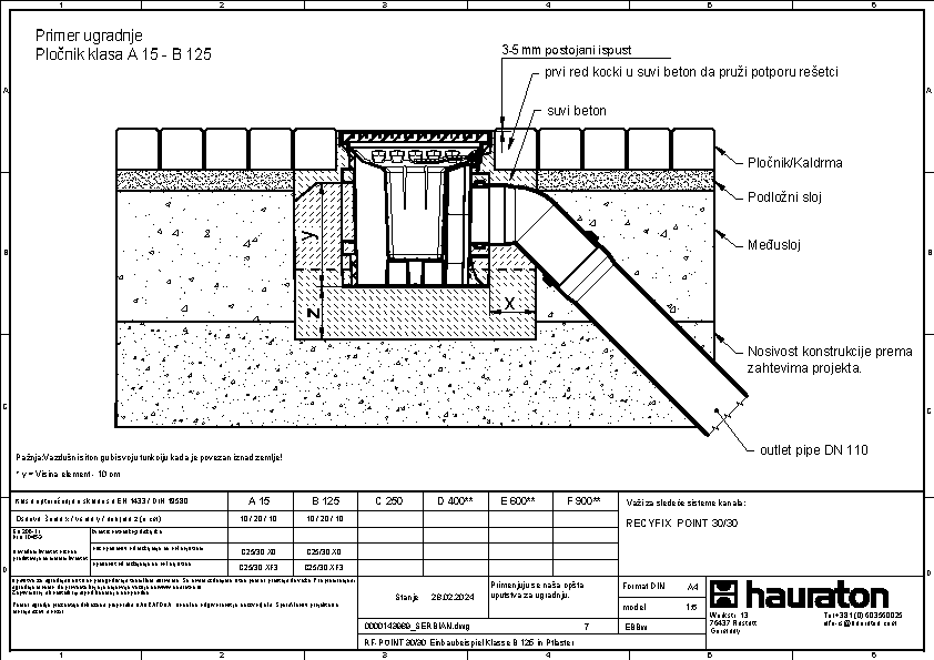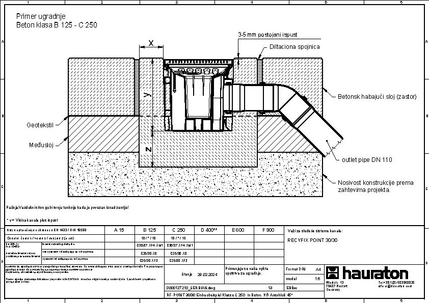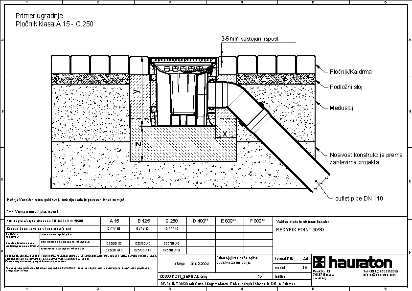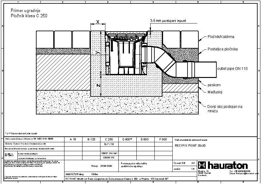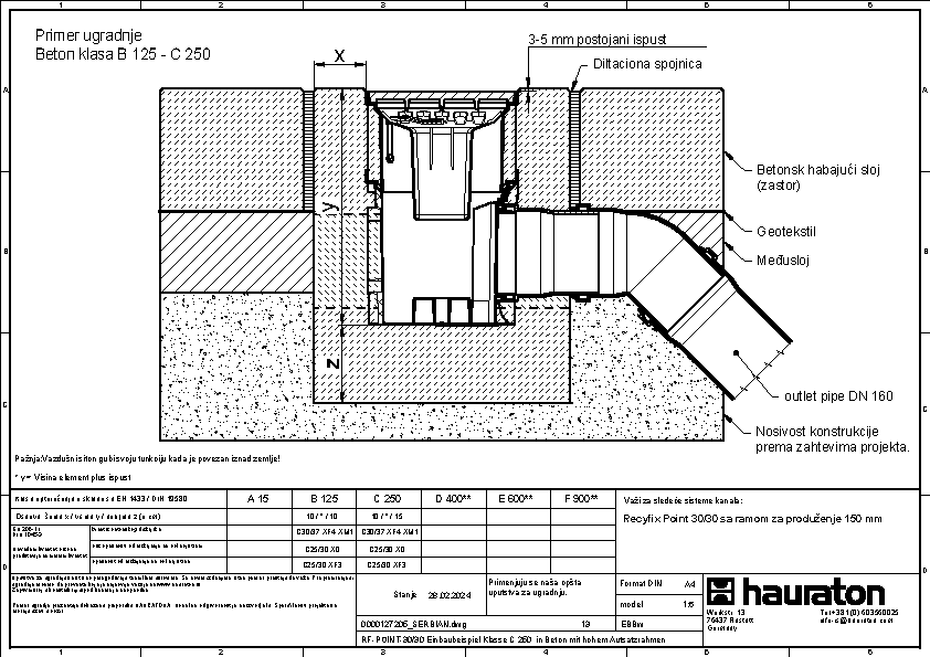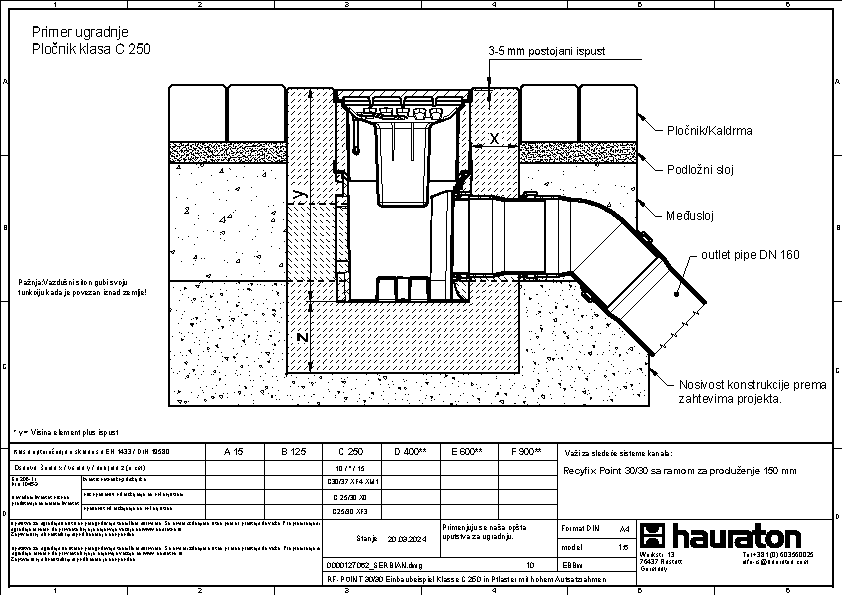 RECYFIX POINT 30/30, tačkasta odvodnja, klasa opterećenja C250 sa sifonom, kofiicom za nečistoće i KG mufom DN 110 i DN 160