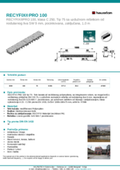 RECYFIX PRO 100 tip 75 - Telo kanala od recikliranog polipropilena, sa integrisanim rubom, sa mogućnošću vertikalnog priključka DN/ OD 75, s uzdužnim razmakom rešetke od nodularnog liva 9 mm, napravljena od nodularnog liva EN-GJS-500-7, pocinkovano, sa uzdužnom zaštitom od klizanja i zaključavanjem, klasa opterećenja A 15 - C 250 prema EN 1433, DxŠxV 1000x160x75 mm, artikl br. 47068