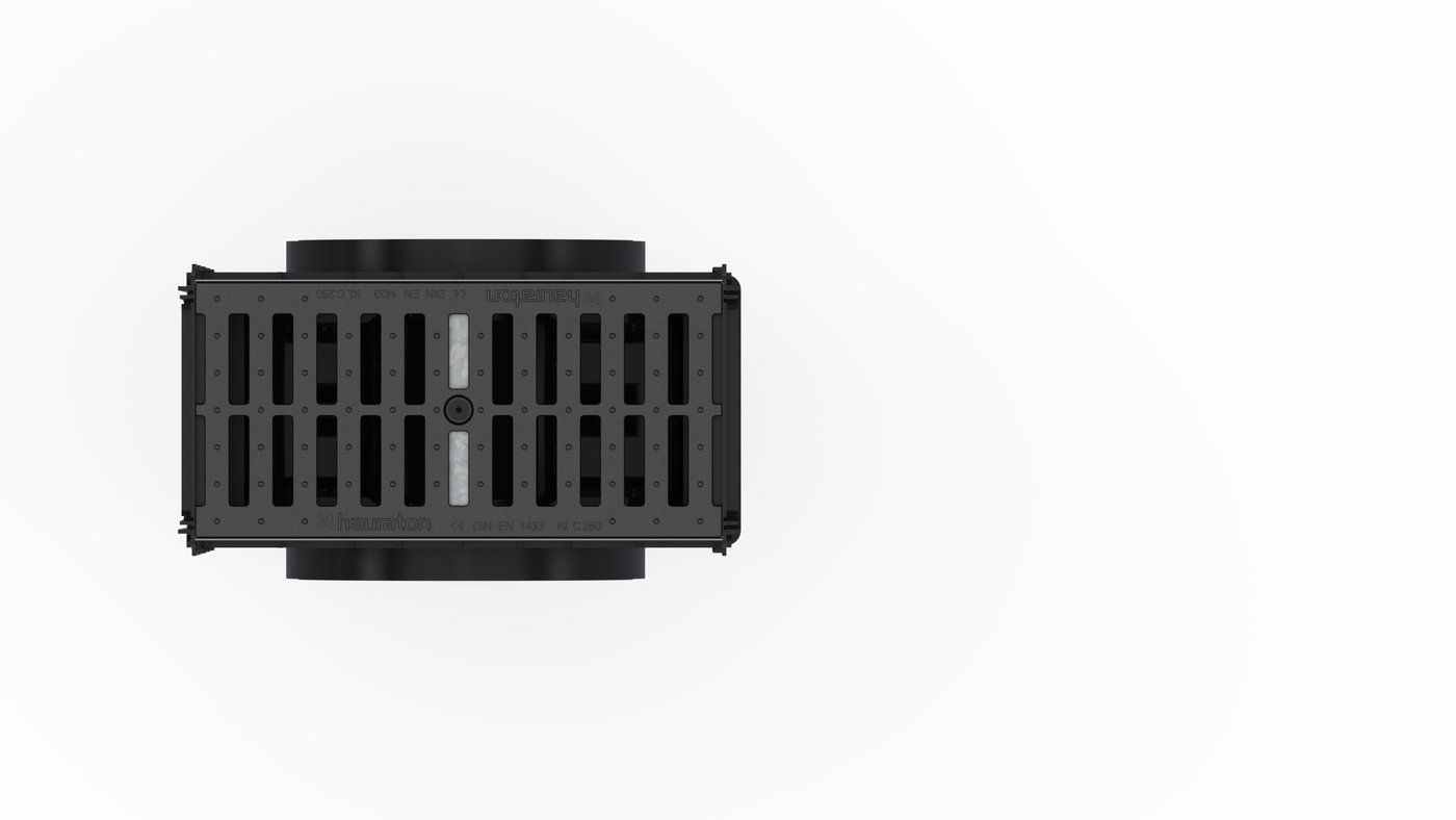 RECYFIX PLUS 200 - Sabirno okno napravljeno od recikliranog polipropilena, sa rubom od nerđajućeg čelika CNS 1.4301, sa obe strane prethodno oblikovanim spojnim elementom za cevi DN/OD 315,sa kantom za mulj napravljenom od recikliranog polipropilena, s 2 završna poklopca napravljena od recikliranog polipropilena, odgovarajuće za obostrano spajanje kanala tipova RECYFIX PLUS 200, sa rešetkom od livenog gvožđa 2x SW 85/20 mm, napravljena od livenog gvožđa EN-GJS-500-7, crne boje, sa uzdužnom zaštitom od klizanja i zaključavanjem, klasa opterećenja A 15 - C250 prema EN 1433, DxŠxV 500x262x801 mm, broj artikla 40056