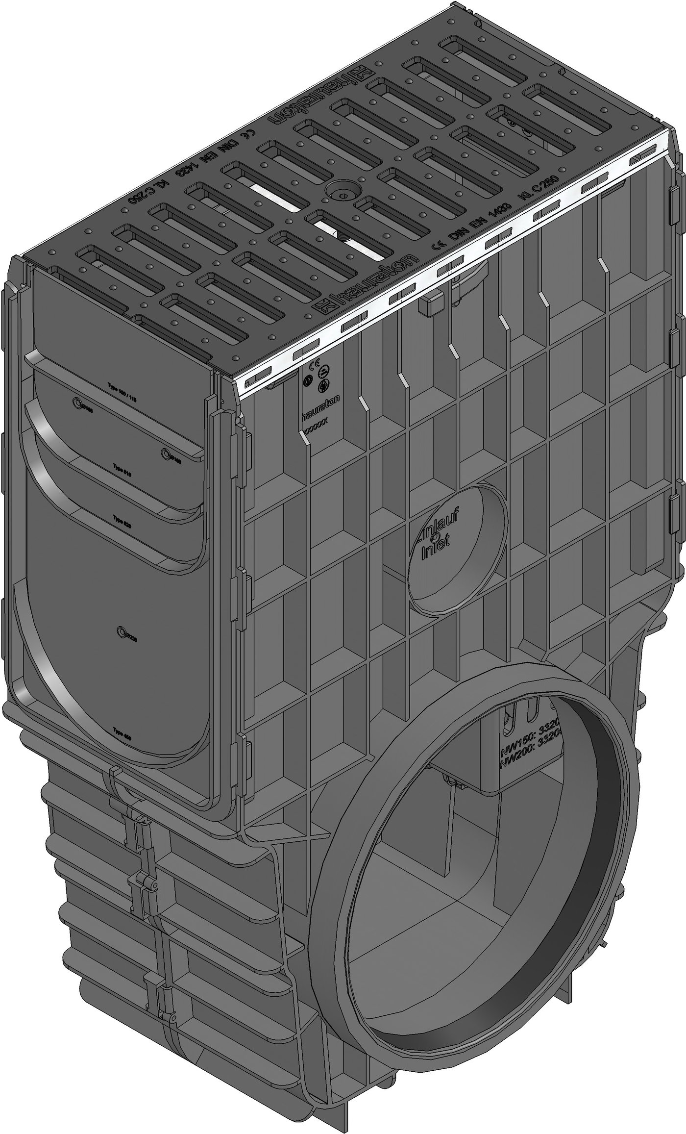 za NW 200, sa korpom od recikliranog PP-a, sa rešetkom od livenog gvožđa 2× SW 85/18 mm, crne boje, klase C250, zaključanam, 0,5m