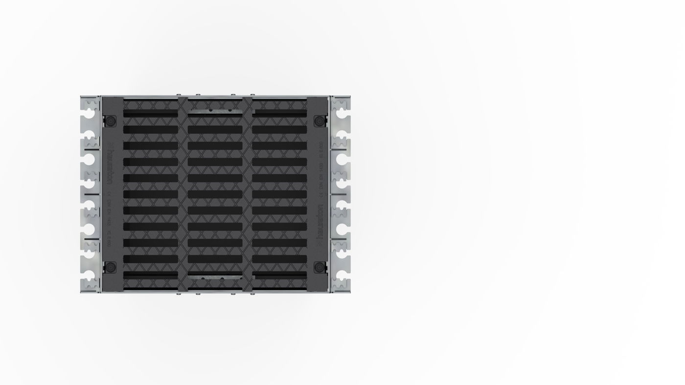RECYFIX HICAP 1000/2000/3000/5000/8000 - Sabirno okno napravljeno od recikliranog polipropilena, prema EN 1433, CE usaglašeno, s okvirom od pocinkovanog čelika sa svih strana, sa rešetkom od nodularnog liva 3x SW 140/20 mm napravljena od nodularnog liva E
