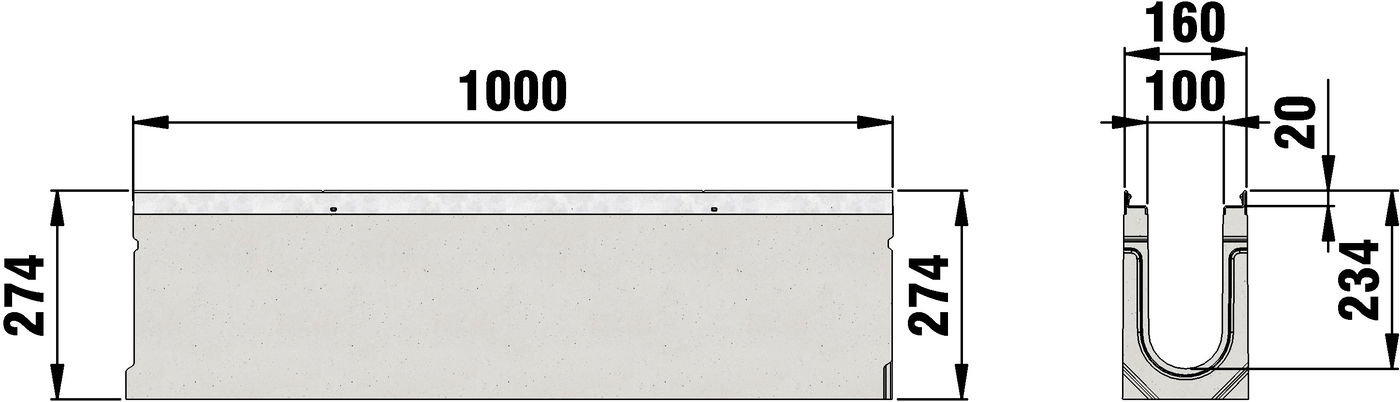 SERVISNI KANAL FASERFIX KS 100 izrađen od betona ojačanog vlaknima sa rubom od 20 mm, klasa E 600