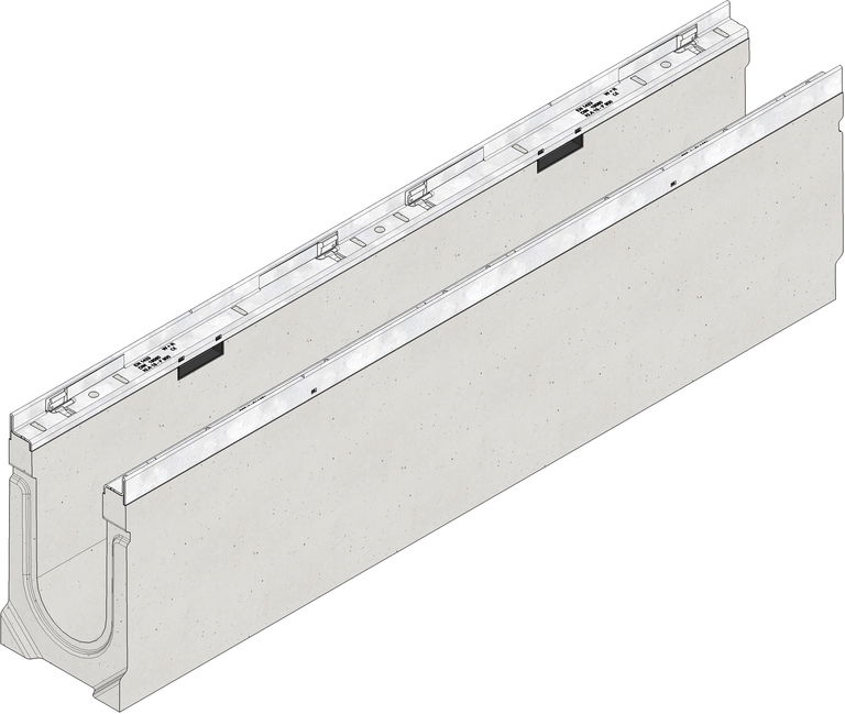 MEDIJSKI KANAL FASERFIX KS 100 tip 020 - Telo kanala napravljena od vlaknima ojačanog betona, sa rubom od pocinkovanog čelika, sa sistemom zaključavanja bez vijaka SIDE-LOCK, 8-struko zaključavanje, sa žljebom za zaptivanje, klasa opterećenja A 15 - F 900
