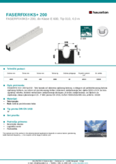 FASERFIX KS+ 200 tip 010 - Telo kanala od vlaknima ojačanog betona, s oblogom od prefabrikovanog betona ojačanog čelikom, sa rubom od pocinkovanog čelika i sistemom zaključavanja bez vijaka SIDE-LOCK za brzu ugradnju rešetke, dodatni mehanizam zaključavanja dostupan, 8-struko zaključavanje, sa žljebom za zaptivanje, klasa opterećenja A 15 - F 900 prema EN 1433, DxŠxV 4000x510x465 mm, artikl br. 33320