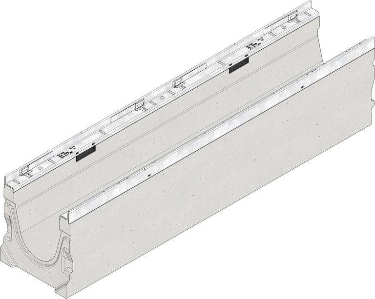 FASERFIX SUPER KS 150 - kanaleta iz betona armiranega z vlakni, rešetke obremenitveni razred A 15 - F 900 po DIN V 19580/EN 1433, v skladu s CE, z vgrajenim padcem tip 1 - 10, s pocinkanim okvirjem in brezvijačnim sistemom pritrjevanja rešetk SIDE-LOCK, 8