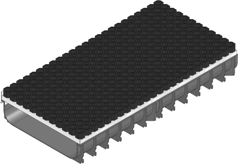 SPORTFIX Lovilec peska iz reciklirane umetne mase polipropilen, črn, prednaazani priključki DN 100, s kovinskim profilom za stik priključka na tekališče z umetno maso, z raztegnjeno mrežo in gumi predpražnikom, pohodno, dxšxv 1000 (2x500)x500x163 mm, št.