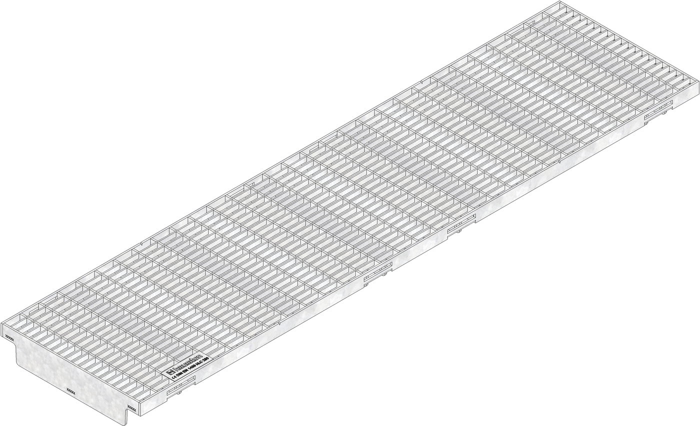 FASERFIX KS 200 - Pororošt vyrobený z pozinkovanej ocele, zabezpečený proti horizontálnemu posunu, trieda zaťaženia A 15 - C 250 podľa EN 1433, značka zhody CE, uchytenie v 8 bodoch, oká 30/10, dĺžka 1000 mm, artikel 12075