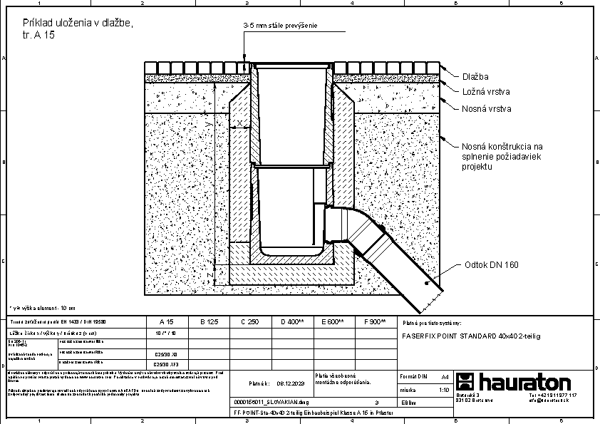FASERFIX POINT STANDARD 40/40 veľkosť 1 - Dvorný vpust vyrobený z vláknobetónu, dvojdielny, s objímkou s tesnením DN/OD 160, so zápachovým uzáverom a košom na nečistoty, s pororoštom z pozinkovanej ocele, oká 30/30, trieda zaťaženia A 15, d/š/v 400x400x988 mm, artikel 4860