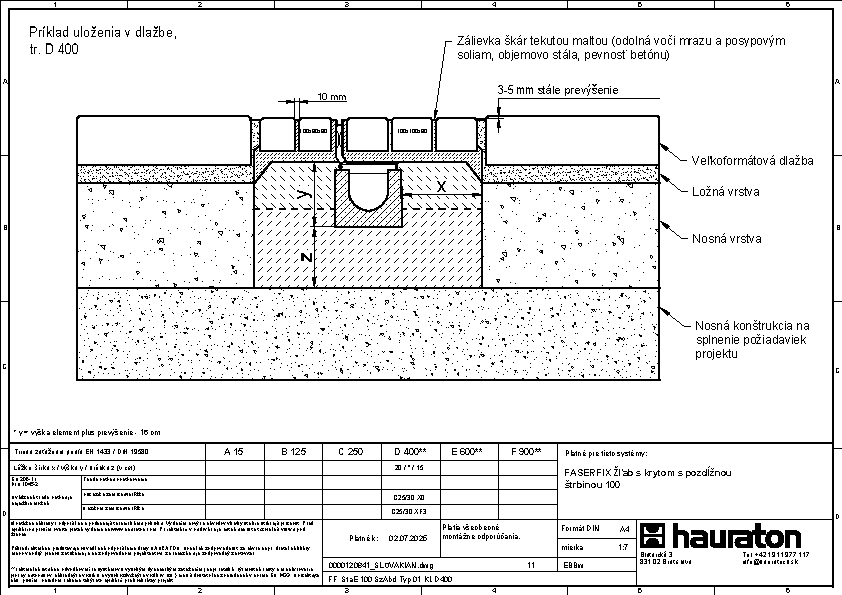 FASERFIX STANDARD E 100 Typ 01 - Žľab vyrobený z vláknobetónu, trieda zaťaženia A 15 - C 250 podľa EN 1433, v kombinácii so štrbinovými nástavcami až do triedy zaťaženia D 400, značka zhody CE, s tesniacou drážkou, d/š/v 1000x162x140 mm, artikel 6200