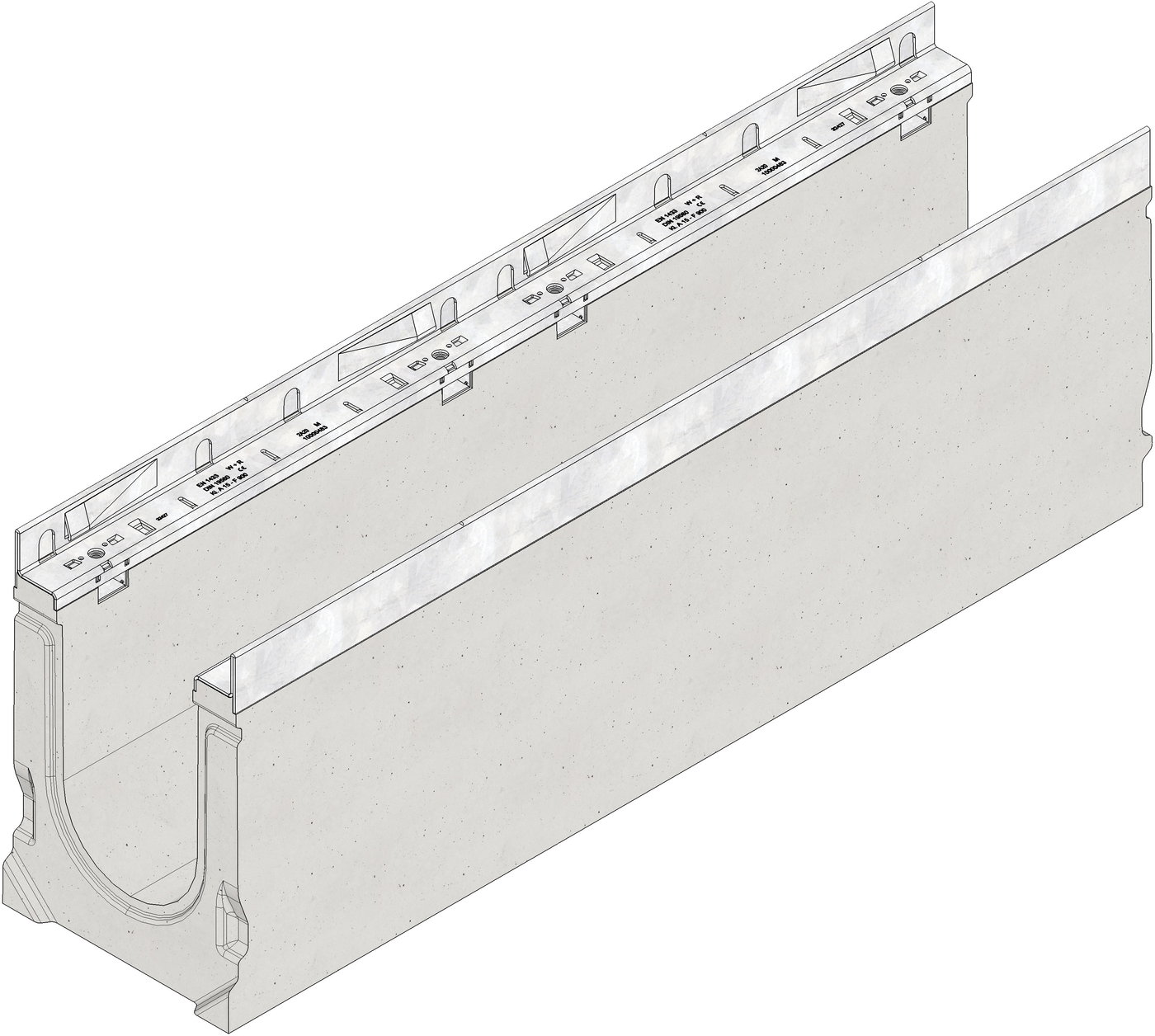 FASERFIX SUPER 150 Typ 020 - Žľab vyrobený z vláknobetónu, trieda zaťaženia A 15 - F 900 podľa EN 1433, značka zhody CE, s rámami z pozinkovanej ocele a bezskrutkovým rýchlouzáverom SIDE-LOCK, aretácia s 8 skrutkami, d/š/v 1000x240x369 mm, artikel 2044