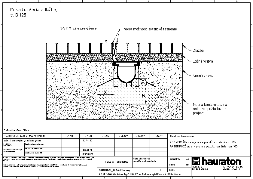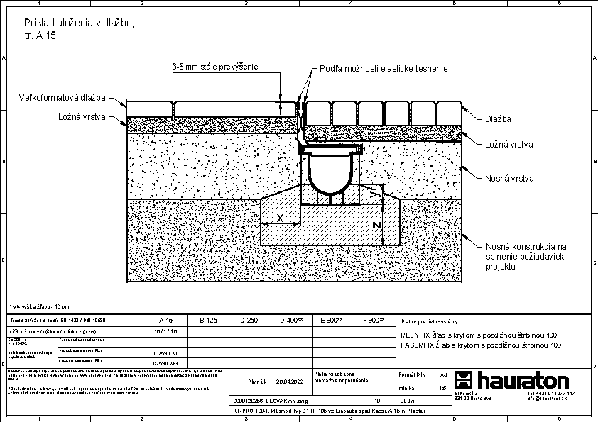 Štrbinové kryty 100, výška hrdla 105 mm, trieda A 15